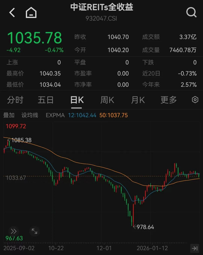 去年12月24日,中证REITs全收益指数达到978.64点阶段低点后迎来反弹,其间最高涨幅一度超过8%。今年以来,该指数累计涨幅为2.57%。