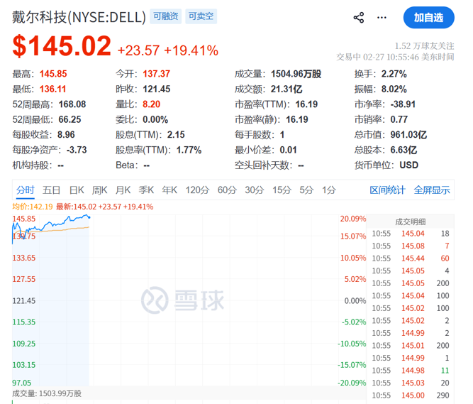 财报方面,戴尔科技在AI服务器销售前景超出预期后,股价暴涨约20%,显示出需求强劲。