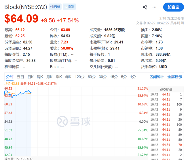 Block公司宣布裁员4000人(裁减近一半员工),赌注在于AI能够提高生产力,这一举动加剧了上述风险。Block股价随后飙升超17%。
