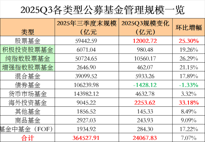 【导读】2025年三季度公募非货规模出炉,权益类基金规模大幅增长