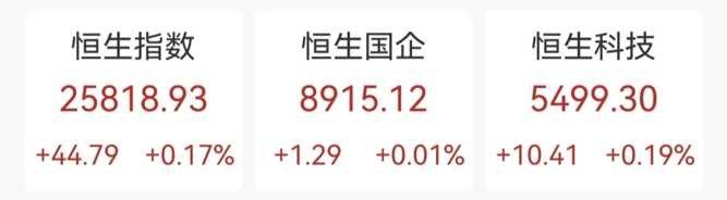 12月24日,港股因假期提前收市,本周交易收官。恒生指数涨0.17%,报25818.93点;恒生科技指数涨0.19%,报5499.3点;恒生中国企业指数涨0.01%,报8915.12点。大市成交925.2亿港元;南向资金净卖出11.75亿港元。
