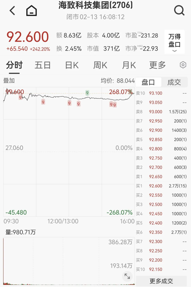 2月13日,海致科技集团在港交所挂牌上市,成为全球首家以人工智能领域图计算技术消除大模型幻觉为核心业务的上市公司。公司上市首日股价大涨242.20%,报收于92.60港元/股。