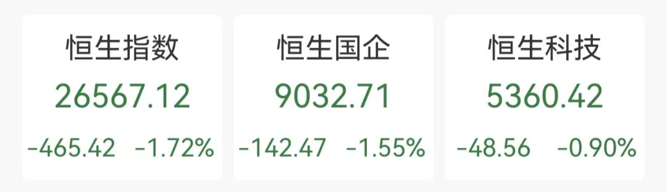 2月13日,港股震荡走低。恒生指数收跌1.72%,报26567.12点;恒生科技指数收跌0.90%,报5360.42点;恒生中国企业指数收跌1.55%,报9032.71点。市场成交额为2575.78亿港元,较前一交易日的2387.05亿港元有所增加。