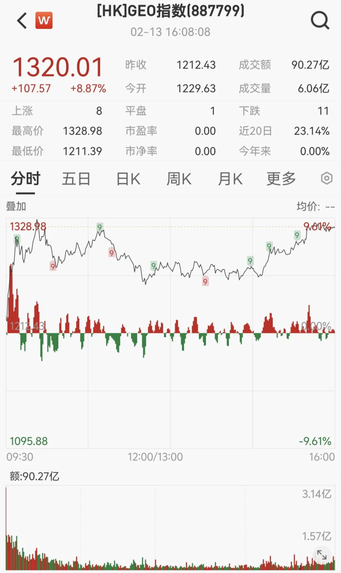 “AI大模型双星”带动整个GEO板块(生成式引擎优化Generative Engine Optimization)逆市大涨,万得GEO指数涨8.87%。