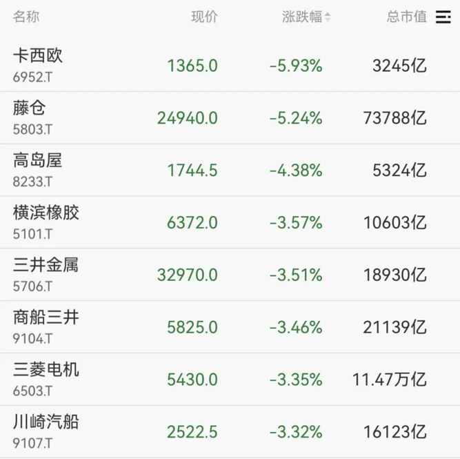 个股方面,卡西欧、藤仓、高岛屋等跌幅居前。