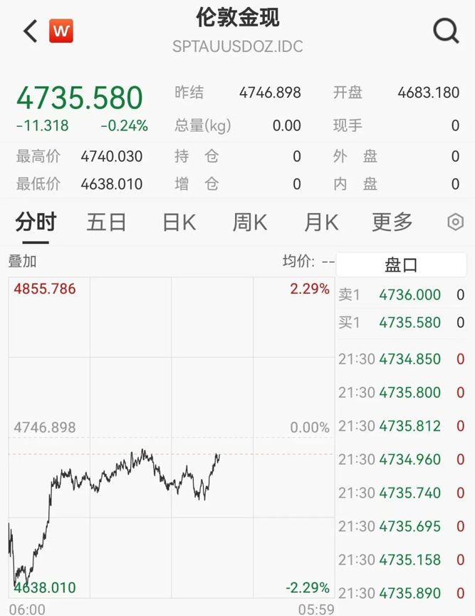 4月13日早间,伦敦黄金现货下探至4650美元的低点后,快速拉升。截至发稿,黄金现货重新站上4700美元上方。