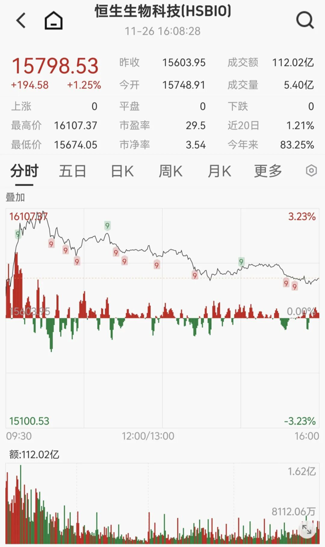 生物科技股连续第三日反弹,恒生生物科技指数一度大涨3.23%,收盘时上涨1.25%。