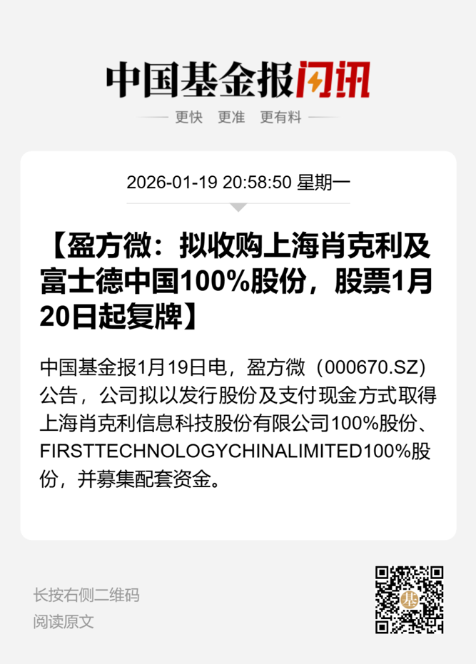 盈方微公告称,公司本次对上海肖克利100%股份、富士德中国100%股份的收购不互为前提,任何一家公司的股份收购成功与否,不影响对其他标的公司的收购。