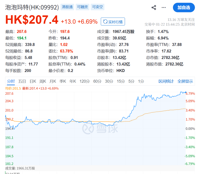 另外,值得一提的是,1月21日晚间,泡泡玛特发布公告称,公司当日以9649万港元回购公司50万股股份,回购价格为191.1港元至194.9港元。这是公司本周内第二次回购股份,累计回购金额近3.5亿港元。