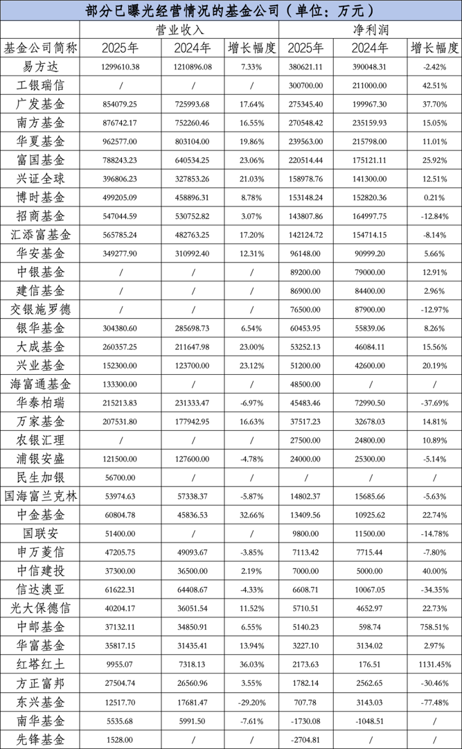 在上市银行、券商的2025年年报密集披露之下,多家基金公司净利润集中曝光。