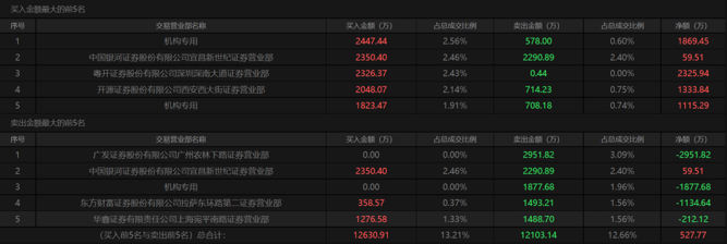 同时,通达海在1月13日登上龙虎榜。数据显示,通达海1月13日的前五大买方中,第一和第五大买方为机构专用账户,其余均是券商营业部账户。