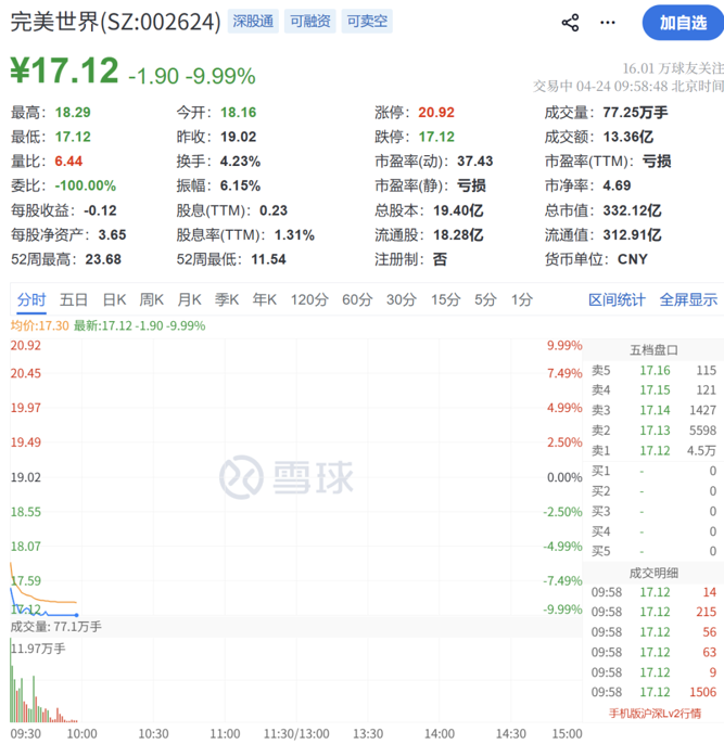 完美世界跌停