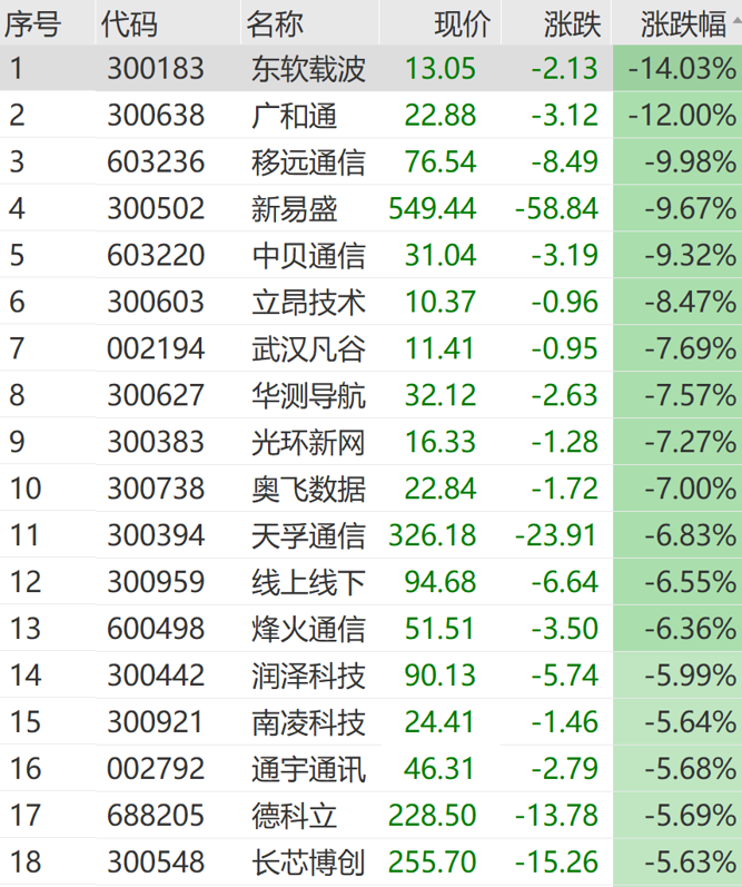通信板块震荡下挫