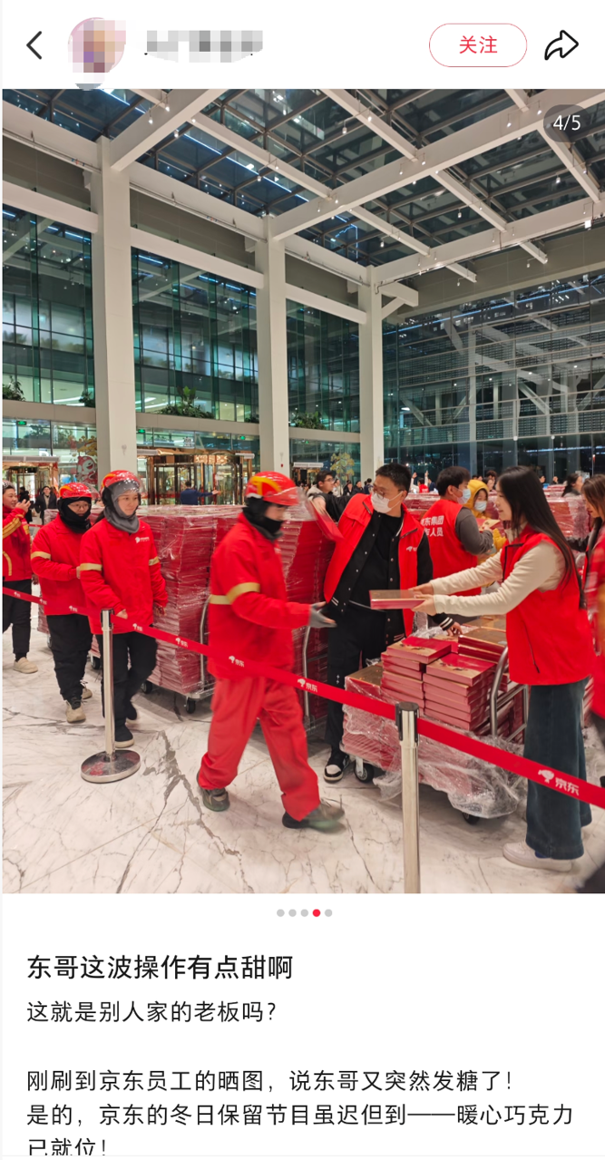 值得一提的是,就在前一日,京东员工朋友圈被GODIVA巧克力刷屏,创始人刘强东自掏腰包的十万盒新年福利,成为年末职场圈的热门话题。