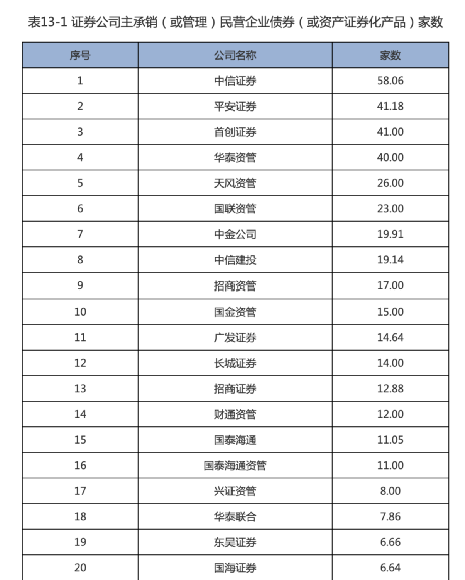 民营企业债:中信证券、平安证券、首创证券承销家数位居前三