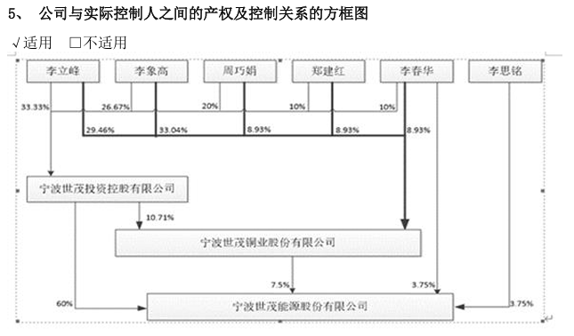 同时,李立峰、郑建红、李象高、周巧娟、李春华、李思铭等6名自然人,合计控制世茂能源75%的股份,是世茂能源的实际控制人。