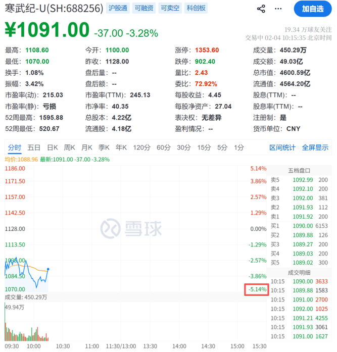 2月4日,AI算力方向盘初走低,存储器、模拟芯片、GPU、算力租赁、光模块等方向集体下挫。个股方面,开普云跌超13%,新易盛、中际旭创、澜起科技、普冉股份等多股大跌。昨日受到“小作文”冲击后,寒武纪盘中跌超5%,最低价为1070元/股。据报道,有知情人士透露,英伟达公司正接近达成一项协议,将向OpenAI投资200亿美元作为其最新一轮融资的一部分。此前,OpenAI曾暗示英伟达可能最高投资1000亿美元。英伟达CEO黄仁勋近期表态称,这个数字从来不是正式承诺,更不意味着英伟达会一次性砸下1000亿美元。民爆光电连续3日20cm涨停