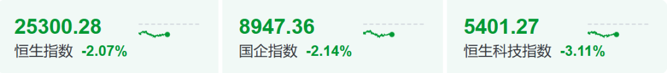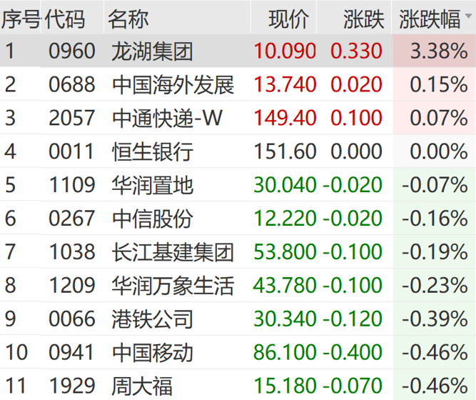 港股市场同步走低,截至午间收盘,恒生指数、恒生国企指数跌超2%,恒生科技指数跌超3%。龙湖集团逆市上涨超3%,领涨恒生指数成份股。