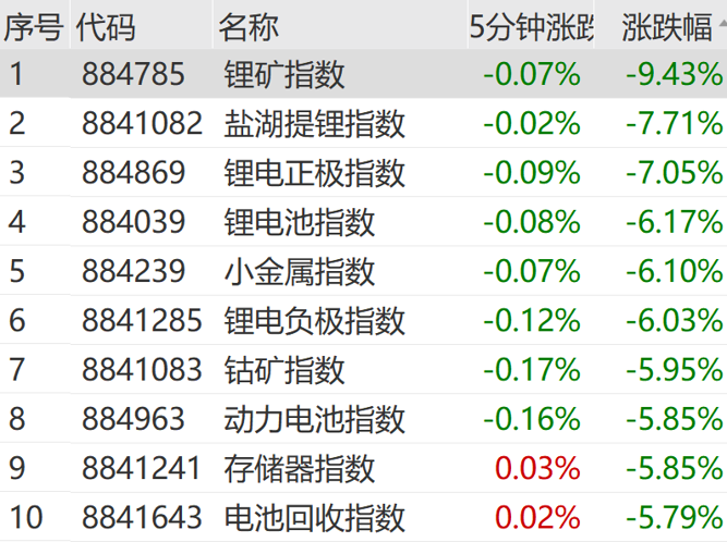 赣锋锂业、天齐锂业两大巨头双双跌停,江特电机、西藏珠峰、大中矿业等十余股跌停。