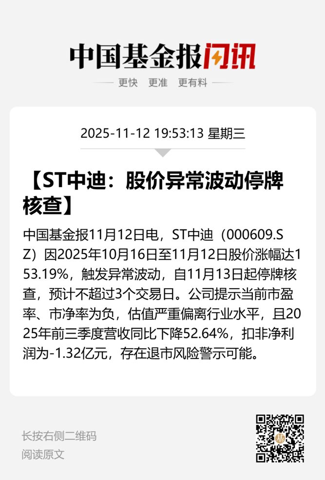 【导读】ST中迪11月13日起停牌核查,预计不超过3个交易日