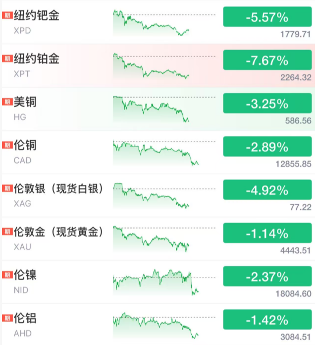 【导读】贵金属全线暴跌
