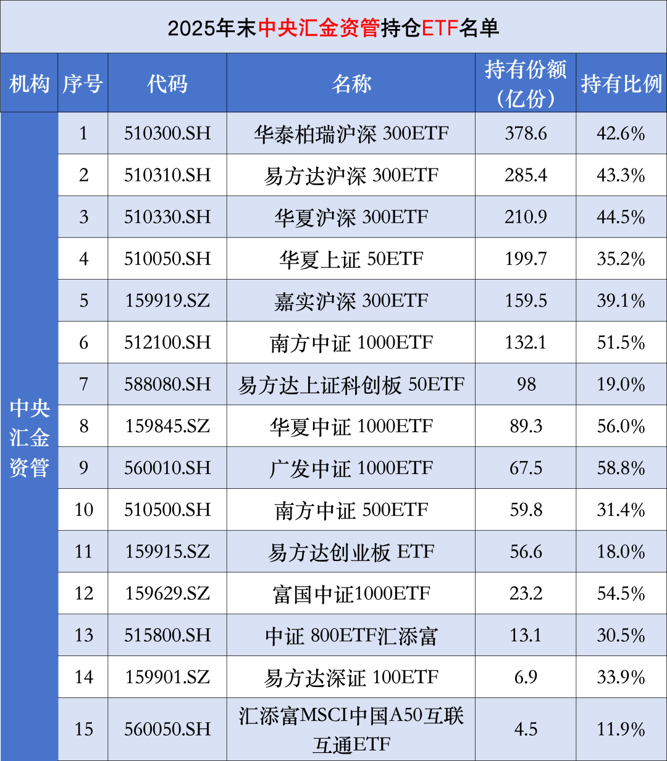 【导读】2025年下半年ETF持仓大揭秘:汇金稳居第一,险资、券商集体加仓,机构成绝对主力