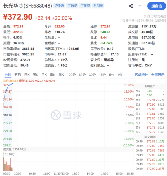 4月22日上午,光模块概念股再度活跃。长光华芯20cm涨停,股价再创历史新高。