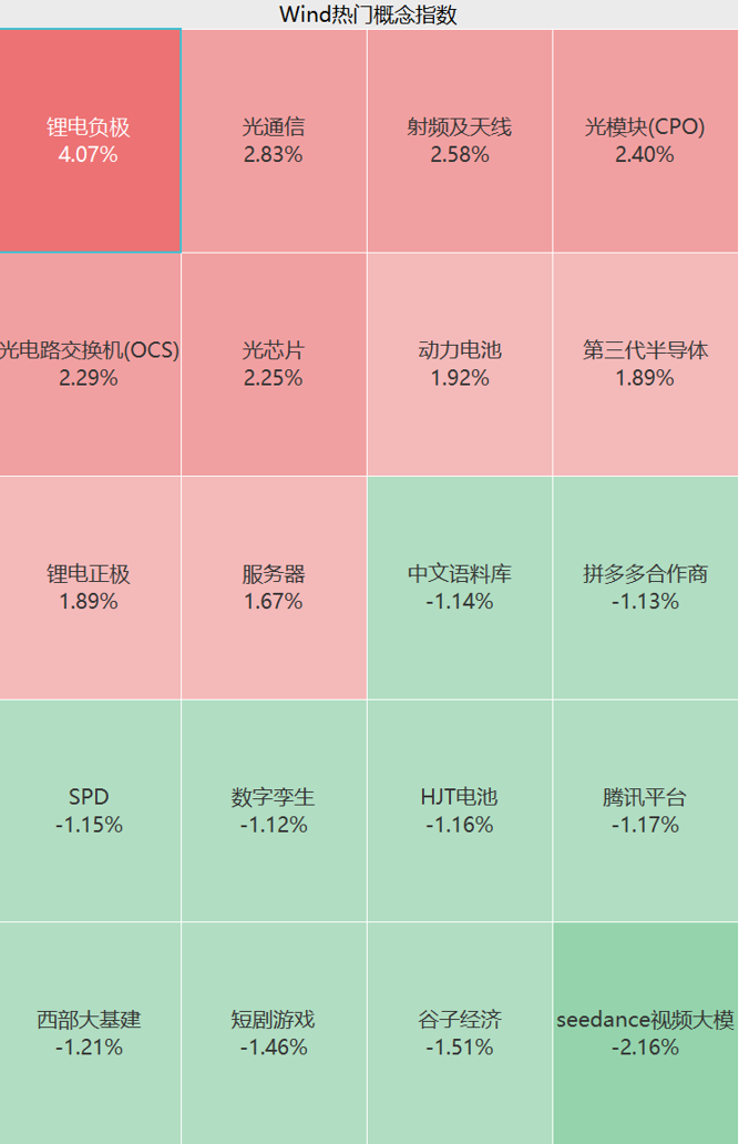 盘面上,上午通信、电子、煤炭等板块走强,电池产业链大爆发,光模块、光通信、光芯片、锂电等方向活跃;传媒、建筑等板块不振。