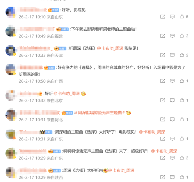 《惊蛰无声》目前票房超1.7亿元,排在第二位。知名歌手周深此次为《惊蛰无声》献唱主题曲《选择》,引发影迷和歌迷的双重关注。