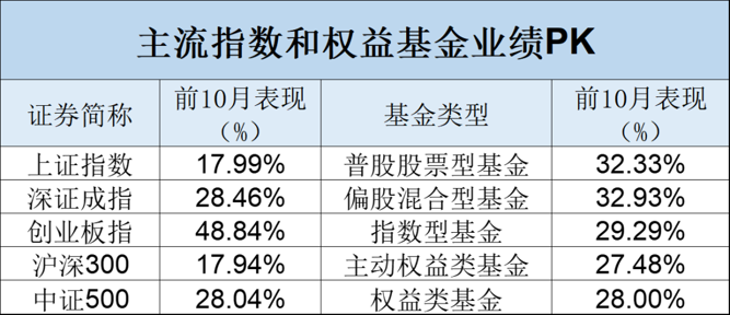【导读】前10月主动权益基金平均业绩超27%,34只“翻倍基”,最牛超过200%