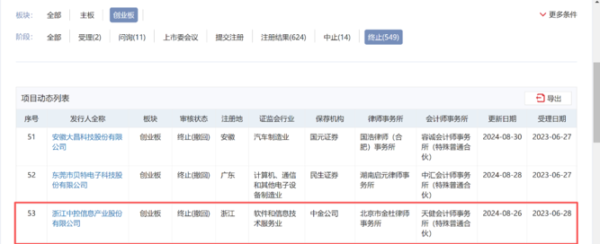 记者查询发现,中控信息曾闯关创业板IPO,但在2024年,其主动撤回了上市申请。