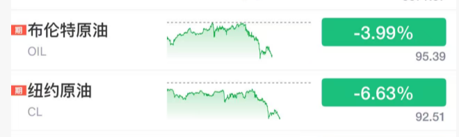 油价方面,原油价格回吐前一日涨幅。WTI原油期货下跌6%,报每桶92美元上方;布伦特原油下跌4%,报每桶95美元上方。