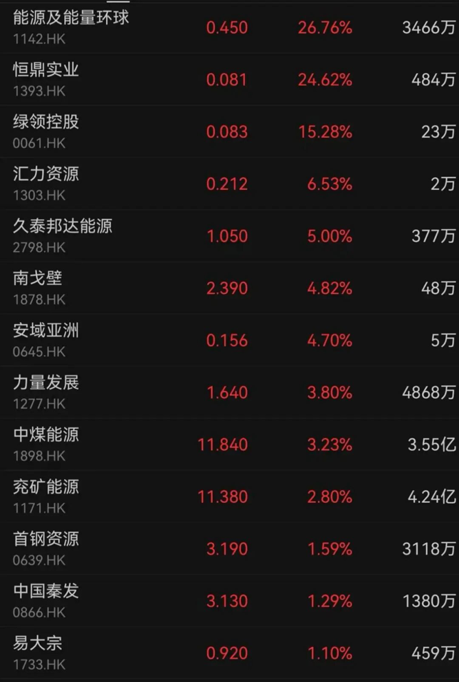 汇力资源、久泰邦达能源、南戈壁分别上涨6.53%、5.00%、4.82%。