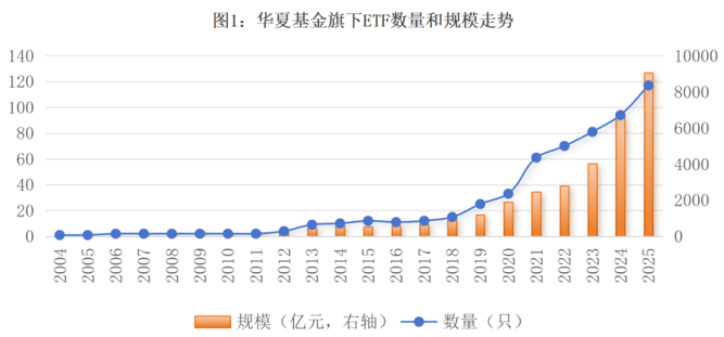 这一规模增长并非偶然。2004年,华夏基金发行境内首只ETF(上证50ETF,510050),由此开启对ETF市场逾20年的持续深耕,规模长期稳居境内行业首位。