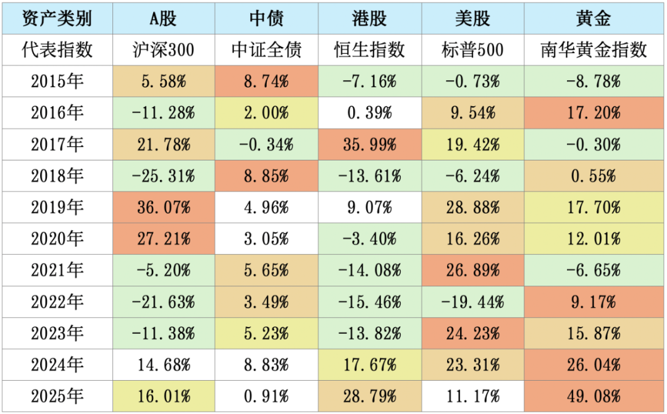 各年度大类资产表现