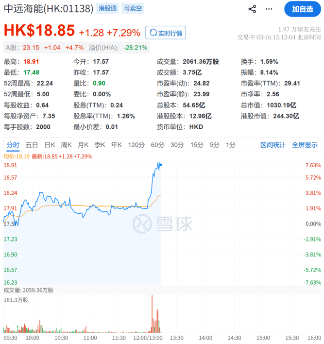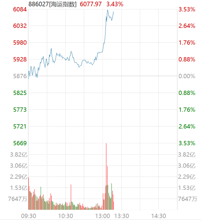 3月16日午后,A股海运指数直线拉升,涨幅一度超3.5%。