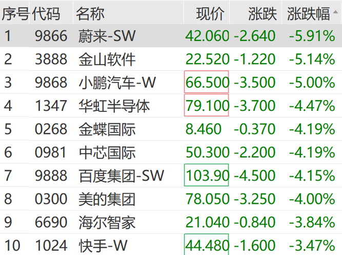 港股早间低开:恒生指数跌1.68%,恒生科技指数跌2.78%,恒生国企指数跌1.81%。截至发稿,跌幅略有收窄。蔚来跌近6%,领跌恒生科技指数成份股。
