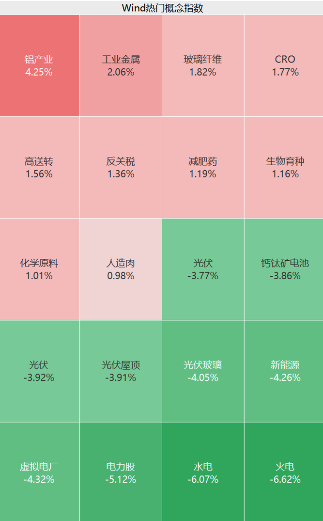 【导读】A股市场震荡走低,铝产业概念股集体走强,创新药板块持续活跃,电力、光伏大跳水