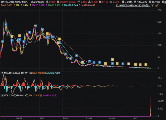 Beyond Meat是一家以植物肉替代品闻名的食品公司。近日,该公司股价涨势凶猛,3个交易日累计涨幅接近600%。