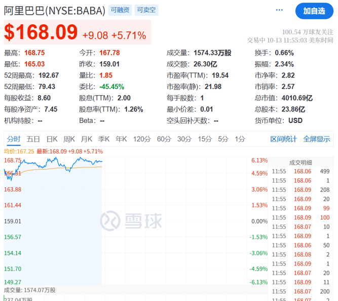 中国资产方面,全线大涨,中概股指数暴涨超3%,阿里巴巴涨超5%。