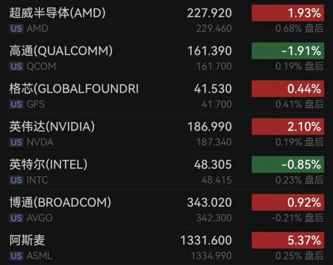 芯片股多数上涨