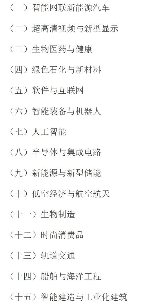 大力发展智能网联新能源汽车、超高清视频与新型显示、生物医药与健康、绿色石化与新材料、软件与互联网、智能装备与机器人等6个新兴支柱产业。