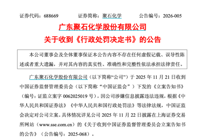 以上罚款金额合计670万元。同日,上交所发布关于对聚石化学及有关责任人予以公开谴责的决定。