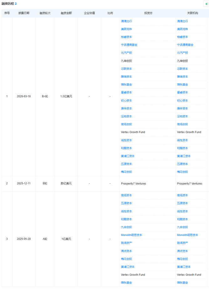本轮融资集结行业顶级投资机构,Synstellation Capital、滴滴、美团龙珠等头部产业资本联合入局,柏睿资本、九阳家办、甬宁高芯、北汽产投、九坤创投、芯联资本、雅瑞资本等战略投资机构加持,锦秋基金、星睿资本、初心资本、庚辛资本、沄柏资本等一线财务投资机构联袂共投。