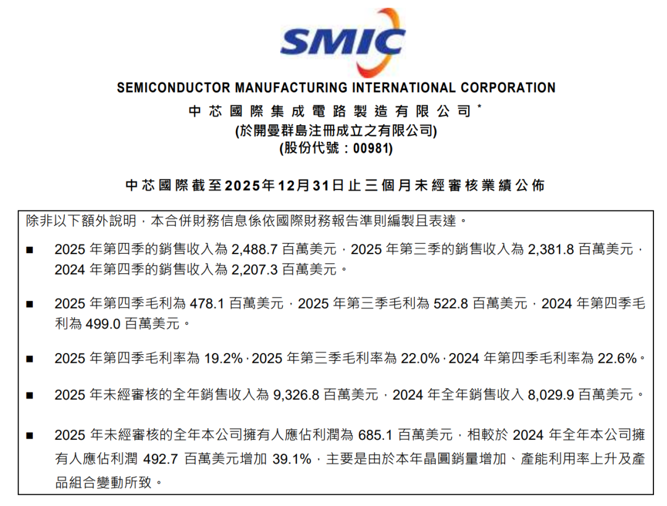 中芯国际净利润同比大增60.7%