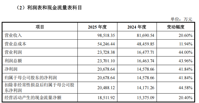 招股意向书显示,受益于家电、包装业务稳健经营,新能源、电子及航空航天涂层材料等业务快速增长,慧谷新材经审计机构审阅的2025年全年营业收入为9.85亿元,同比增长20.60%;归母净利润为2.07亿元,同比增长41.84%。