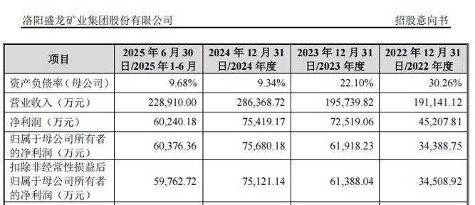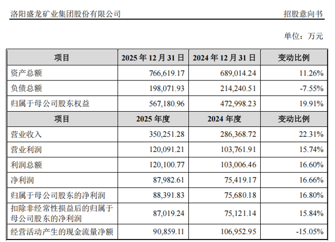 招股意向书显示,受益于钢铁行业“普钢转特钢”的转型,下游客户对钼的需求稳步增长,带动钼精矿、钼铁量价齐升,盛龙股份经审计机构审阅的2025年全年营业收入为35.03亿元,同比增长22.31%;归母净利润为8.84亿元,同比增长16.80%。