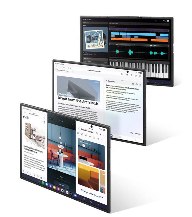 据介绍,Galaxy Z TriFold在最薄处仅有3.9毫米,搭载定制的骁龙® 8 Elite移动平台,配备200百万像素摄像头,以及三星有史以来最大可折叠手机电池容量,实现旗舰级性能。5600mAh三电池系统被安装在设备的三个面板中,实现平衡的动力输出和全天续航。配合45W超高速充电,Galaxy Z TriFold让用户可以无限制地流媒体播放、创作和工作。