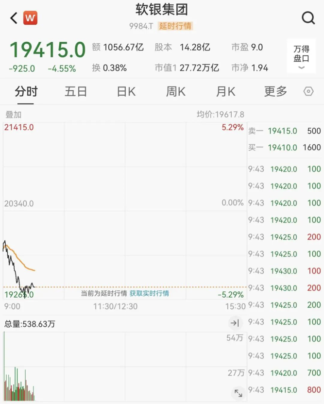 11月18日,日本股市开盘再度走低,日经225指数下跌超1000点,跌幅超2%。