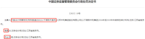 2月21日,中国证监会网站挂出行政处罚决定书,当事人为天衡会计师事务所(特殊普通合伙)(以下简称天衡所),以及该所的两名会计师骆竞和吕丛平。经查明,天衡所为中利集团(现*ST中利)2016年至2019年年度报告审计机构,其出具的中利集团2016年至2019年审计报告存在虚假记载,在中利集团2016年至2019年财务报表审计过程中未勤勉尽责。根据相关规定,证监会决定对天衡所责令改正,没收其2016年至2019年年报审计业务收入1485.85万元,并处以2965万元罚款,对签字会计师骆竞、吕丛平给予警告,并分别处以70万元罚款。此前,2024年7月证监会已对中利集团及相关责任人进行了处罚。彼时的公告显示,中利集团通过专网通信业务虚增营业收入和利润,五年时间虚增营收合计约80亿元,虚增利润总额合计约17亿元。处罚决定书显示,中利集团2016年至2021年年度报告存在虚假记载、重大遗漏。天衡所对中利集团2016年至2019年年度财务报表出具了标准无保留意见的审计报告。2016年至2019年财务报表审计服务业务收入共计1485.85万元,签字注册会计师均为骆竞、吕丛平。天衡所在中利集团2016年到2019年财务报表审计过程中未勤勉尽责。其中,从2016年来看,天衡所一是未能恰当实施风险识别和评估程序。中利集团2016年年报披露,相关通讯设备业务为中利集团2016年新增业务。天衡所在集团层面的风险评估中重点关注了集团电缆、光伏组、电站等业务相关风险,不涉及相关通信业务风险,未充分了解相关通信业务经营的内、外部环境、订单来源、原料属性、生产工艺等与该业务实质密切相关的环节,未充分关注物流运输情况,未关注该项业务“高毛利”“高预付”“工艺简单而利润贡献率高”等异常情况。二是未对合同异常情况予以充分关注。2016年至2018年,中利集团子公司中利电子的相关通信业务与不同客户签订的销售合同、与不同供应商签订的主材采购合同样式、条款基本一致,且约定内容简单,而其他业务不存在购、销合同雷同的情况。天衡所未关注到相关通信业务购销合同雷同的明显异常情况,对购销合同中“高预付低预收”“生产流程短销售回款长”的典型融资性特点的条款未保持职业怀疑,也未关注相关通信业务物流运输情况。三是未充分关注同一公司既是客户又是供应商的情况。2015年,苏州某科技公司是中利电子的供应商,2016年苏州某科技公司既是中利电子的供应商,又是客户。中利集团与苏州某科技公司均从事相关通信产品生产。中利电子2016年对应营业收入远超当年度审计重要性水平。天衡所没有保持合理的职业怀疑,未对上述情况予以充分关注。四是部分营业收入审计程序不到位。第一,天衡所未针对子公司中利电子营业收入“发生”认定实施专项审计程序。第二,相关通信业务收入确认较为集中,而人工、制造费用的归集在各个月份间比较平稳。2016年期初库存商品余额为零,生产成本的归集未早于收入确认月份,人工、制造费用归集与主材归集明显不同步,天衡所未关注到上述问题,也未进行合理解释。证监会认为,天衡所在中利集团2016年至2019年年报审计项目中未勤勉尽责,出具的审计报告存在虚假记载。天衡所上述行为违反《证券法》第一百六十三条的规定,构成《证券法》第二百一十三条第三款所述违法行为。签字注册会计师骆竞、吕丛平是上述违法行为直接负责的主管人员。在听证过程中,天衡所、骆竞、吕丛平及其代理人提出相关陈述申辩意见,经复核,除对天衡所提出的部分申辩意见予以采纳外,其他意见不予采纳。根据当事人违法行为的事实、性质、情节与社会危害程度,依据《证券法》第二百一十三条第三款的规定,证监会决定:一、对天衡会计师事务所(特殊普通合伙)责令改正,没收其2016年至2019年年报审计业务收入1485.85万元,并处以2965万元罚款;二、对骆竞、吕丛平给予警告,并分别处以70万元罚款。根据天衡所官网的自述,该所发展历史可以追溯到上世纪八十年代。其称,“在30多年的发展历程中,天衡伴随着中国经济一起发展,伴随着客户一起成长。经过几代人的努力,天衡已经发展成为拥有十多家分所,超过1000名专业人员的综合性会计师事务所。”证监会对中利集团及相关责任人的处罚,则在2024年7月2日已正式落地。彼时*ST中利公告,收到中国证监会《行政处罚决定书》。经查明,中利集团在2016年至2020年期间,通过参与专网通信业务虚增营业收入和利润总额。具体虚增金额如下:2016年虚增营业收入约12.82亿元,虚增利润总额约2.62亿元;2017年虚增营业收入约18.83亿元,虚增利润总额约4.15亿元;2018年虚增营业收入约19.25亿元,虚增利润总额约4.23亿元;2019年虚增营业收入约21.97亿元,虚增利润总额约5.32亿元;2020年虚增营业收入约6.72亿元,虚增利润总额约4732万元。中利集团还存在未按规定披露非经营性资金占用情况。自2018年3月起,中利集团实际控制人王柏兴通过虚假合同或订单等方式,非经营性占用公司资金。2018年至2021年,实际占用金额分别为16.35亿元、26.46亿元、41.10亿元和25.48亿元,但公司未按规定在年度报告中完整披露这些信息,导致2018年至2021年年度报告存在重大遗漏和虚假记载。最终证监会决定对中利集团责令改正,给予警告,并处以800万元罚款;对王柏兴给予警告,并处以1500万元罚款;对王伟峰、钱宏燚给予警告,并分别处以300万元罚款;对陈波